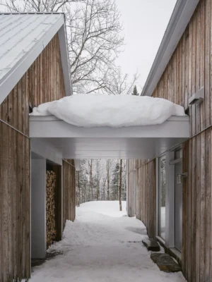 Drawing on the surrounding environment as well as the character of Quebec’s ski chalets, natural materials take centre stage.