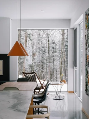 This Ski Chalet in Quebec Is a Dramatic, Cozy Mountain Refuge