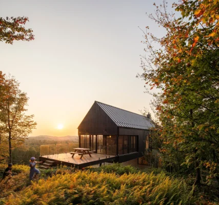 The minimalist Fogo Island Hut by The Backcountry Hut Company offers a modern refuge amidst nature’s raw beauty.