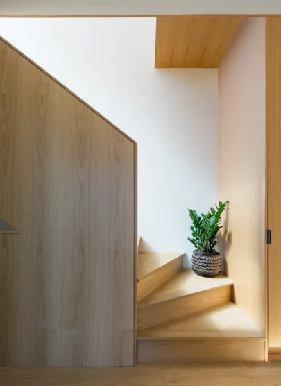 Because the house’s footprint was only 15 feet wide, the challenge lay in drawing daylight into its core. “There was a strong desire to create bright and airy common spaces,” Cousins Wilson says. “Fortunately, the house is adjacent to a laneway, and we were able to take advantage of daylight from this side of the house.”