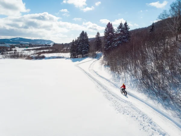 The chubby tires of two-wheeled fat bikes, regular or an e-bike version, are ideal for tackling New Brunswick’s woodland and mountain bike networks, conquering trails that skinny summer tires can’t manage in the winter months. The fat bike’s larger, knobby tires make it easier to navigate the ride on hard-packed and groomed snow trails, and riders can lower tire pressure to increase traction when conditions warrant. Some great winter biking trails can be found in Rockwood Park in Saint John, Mactaquac Provincial Park near Fredericton, and Kouchibouguac National Park. While it may be tempting to hit the trails after a fresh snowfall, it’s best to wait until groomers or snowshoe hikers pack the snow. Bike tracks should not sink more than 2.5 centimetres deep to minimize trail damage and increase cycling ease.