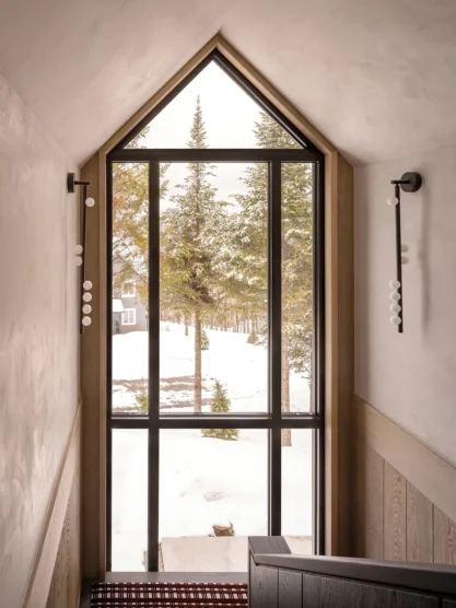 Drawing on the qualities of the surrounding alpine environment as well as the character of Quebec’s ski chalet communities, Chan developed a design where exposed natural materials take centre stage. “A shared appreciation for honest materials and a commitment to generous entertaining defined the design ethos,” he says of the homeowners, who love to host extended gatherings.