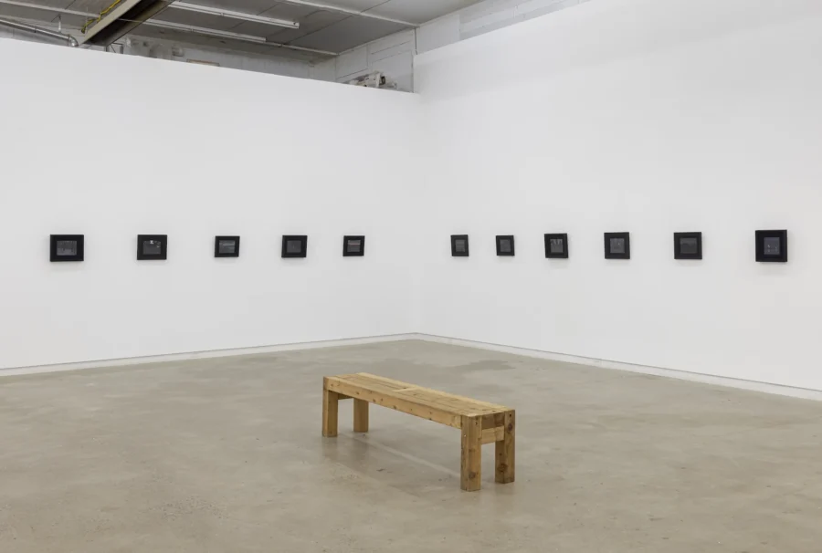 For his new exhibition Making Do With the Photons That Linger After the Sun Has Set at Clint Roenisch Gallery, Sasaki spent 10 months painting en plein air—in the dark. Using a 3D-printed black paintbox of his own design (“the readymade ones were too beige,” he quips) and a palette limited to green, umber, navy, and grey, he worked outdoors through frostbite, mosquitoes, and the watchful eyes of coyotes and deer. Each of the 35 small panels captures the fragile half-hour of nautical twilight, when light dissolves, forms flatten, and the horizon disappears.