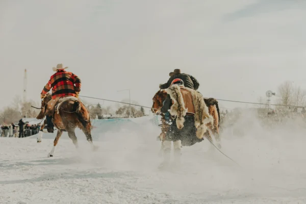 Seeing a cowboy in Alberta isn’t that unusual, but seeing one strapped into a pair of skis and being towed by a horse at speeds of up to 95 kilometres per hour is an altogether different proposition. However, every winter the Canadian province plays host to multiple skijoring events where the main attraction is precisely that: high-speed, horse-powered ski races over jumps and around obstacles. Photographer Morgan Storch’s images of SkijorDue in Calgary are a showcase not just of the participants’ skills but also for the carnival-like atmosphere and the loud, western-inspired outfits that befit such an event.