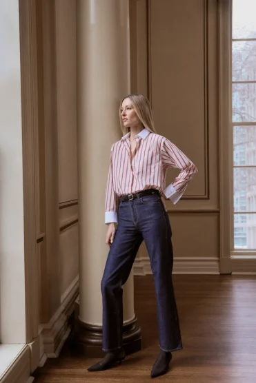 Barkwell and Bissett take pride in their ongoing dialogue with their clientele, at their downtown Toronto retail space or chatting with them online. Their move to release new pieces monthly was motivated by the way women shop today. “Customers are really shopping for what they need at the present time and aren’t necessarily looking forward too much,” Bissett says. “We’ll always be anchored by the shirt, and introduce pieces that help our women wear our shirts.” For spring, that means shirts in new colours and chambray items that make layering, well, easy.
